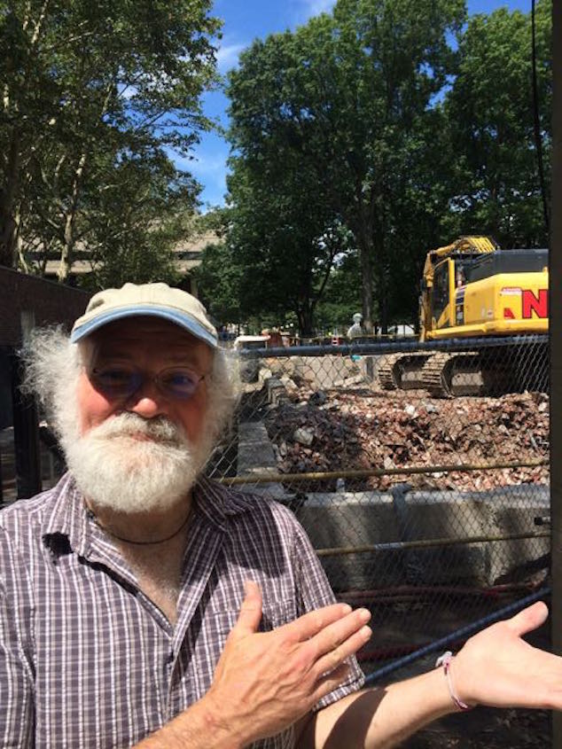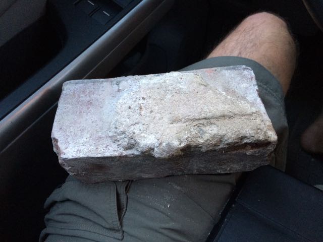 I picked up Max today around noon.. on the way home we stopped by MIT to see where they were tearing down my old dorm Bexley. Sure enough, it was just a hole in the ground. I managed to sneak inside a fence and through a samstone into the whole. I also grabbed a brick.. then had to run when one of the workmen started to run after me !
