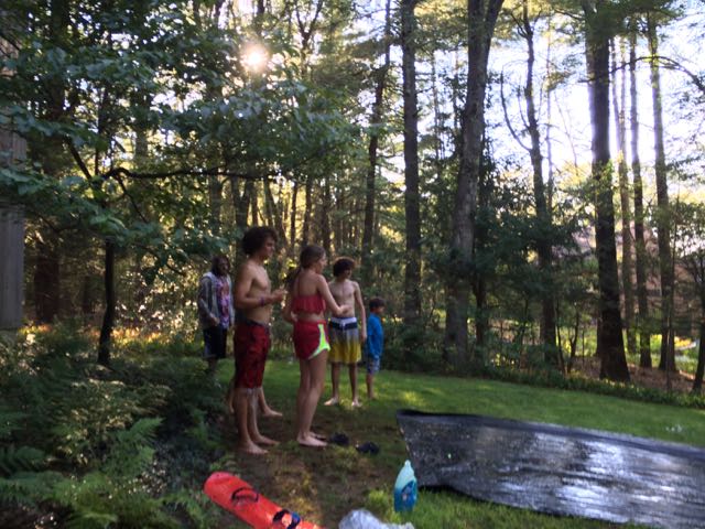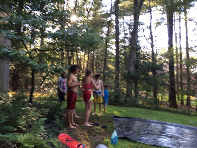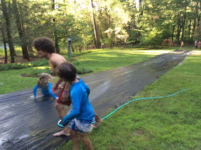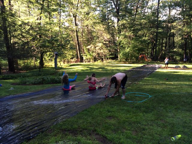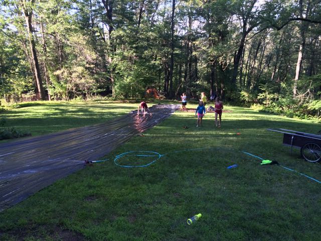 later on we pulled out the 70 foot plastic tarp and built a slip and slide.. dosed it with soap and slid.. good and dangerous fun !