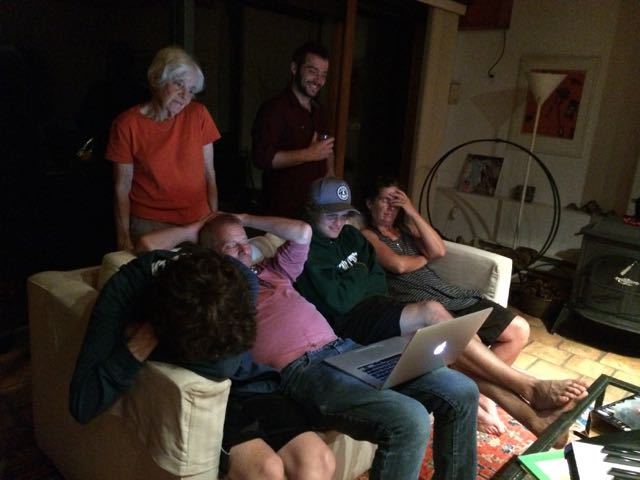 Down at my moms with my family, my brothers family and my sisters family.. pleasant chaos .. 16 of us in all.. cousins from age 5 to 27.. tons of eating and drinking, music, goofiness.