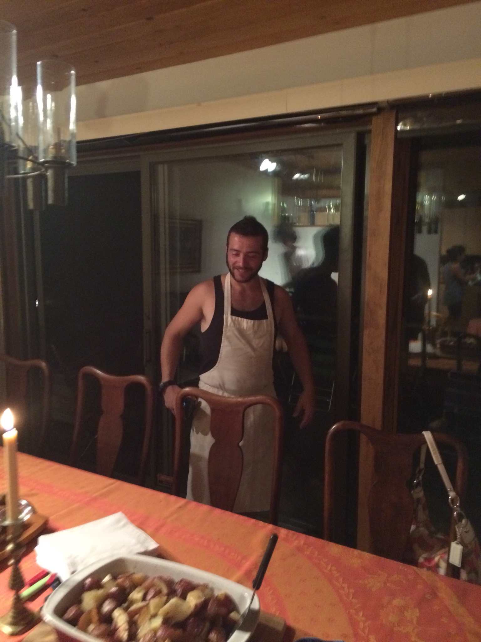 For dinner max and our friend sara offered to cook.. They did steaks, potatoes, cilantro rubbed corn and asparagus for the 19 of us..( well i dont eat steak.. So 18).. He did a really great job !