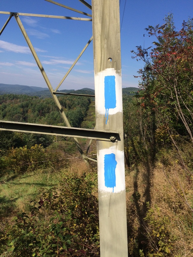 we came out on the power line at the other end.. here you can see the blue blazes over the original white