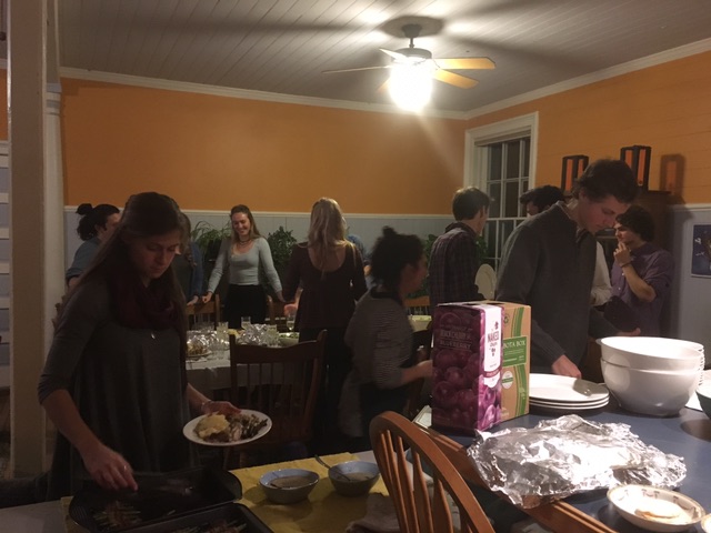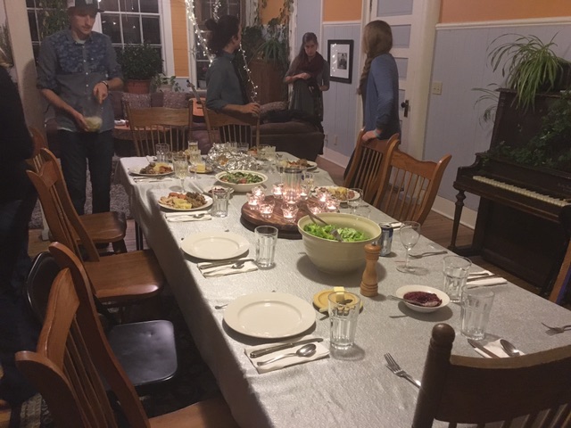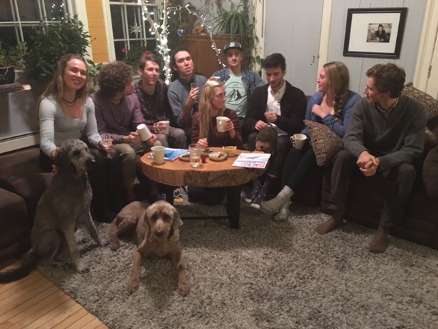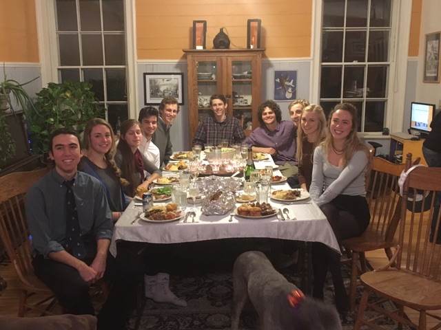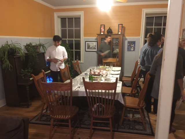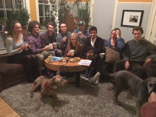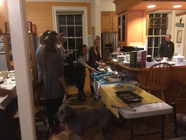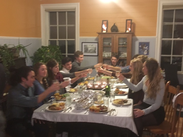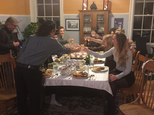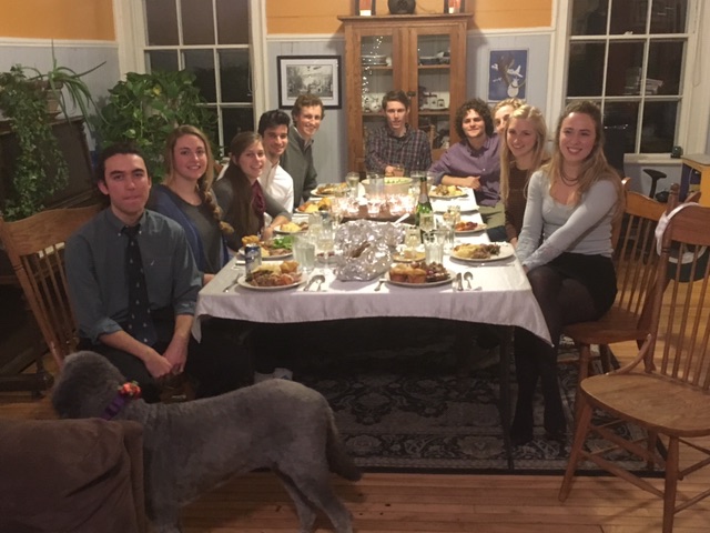 Gabe’s an officer in the UVM Ski and Snowboard club. They decided to have their annual dinner her at the house tonight. It was so fun !> Diane made a full thanksgiving dinner with all the trimmings.. It was great meeting the other officers.. They had a really great meal.. and a great time