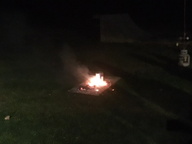 lit a bunch of pyrodex in a can under a big pile of creamer coffecleaner with titanium and iron dust in it..