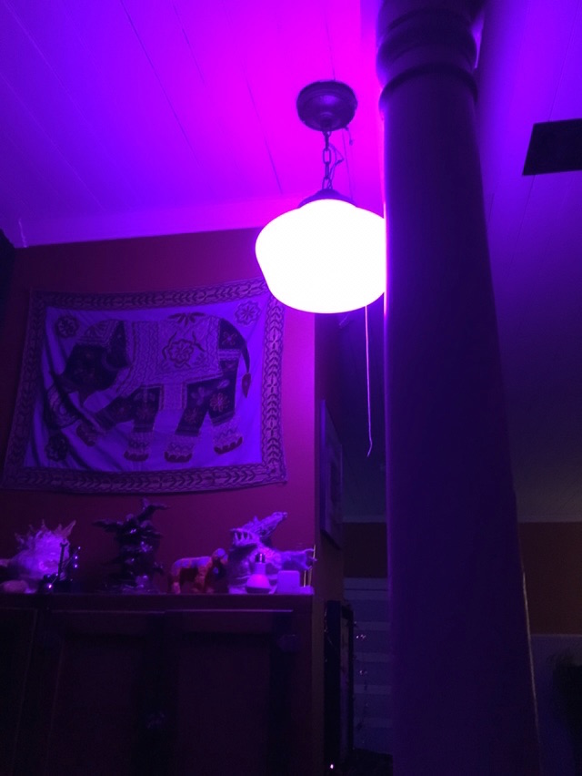 I ran upstairs to tell diane.. and realized that the tower light had been turned off. I switched it on .. and picked the color via my HUE light app.. normally this is done for me by IFTTT that starts cycling the color of the lamp in the townr from Sundown (as determined by the Weather Channel.. an IBM Company) .. .. The same flow turns it off by 10 so we can sleep