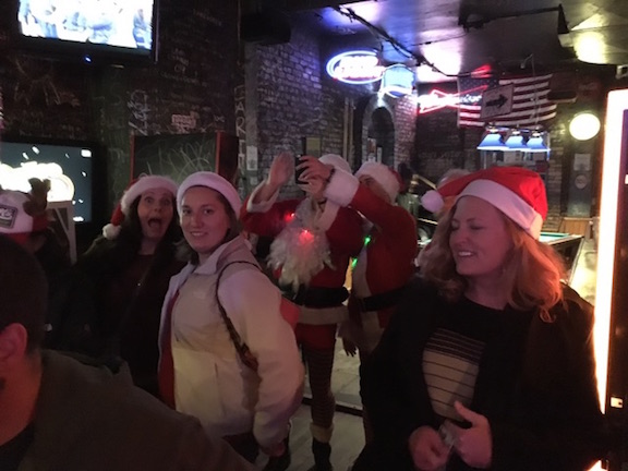 from there we went bar to bar as a huge group of santa.. at one time I think we had almost 30 !!!