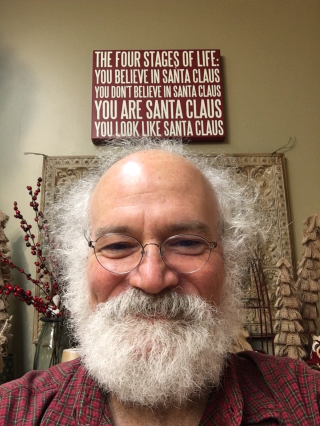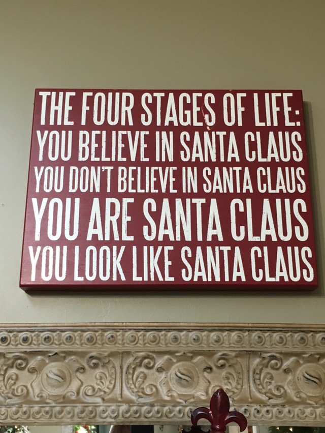I think the solstice was officially about 11:30 OM last night.. but we chose to celebrate it today. We woke up in Endicott.. and took our time getting out. Our last stop was to go by the florist shop whereLinda worked to say ‘bye’.. they had a great santa sign there…. that reminded me of my recent Santa exploits