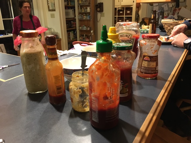 your choice of condiments.. mine had chipotle hot sauce and tomatillo sauce rom Anne Marie ! (thanks Anne Marie !!!)