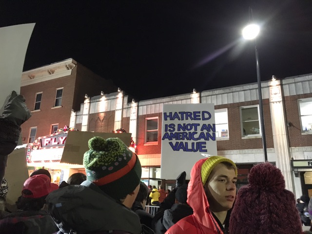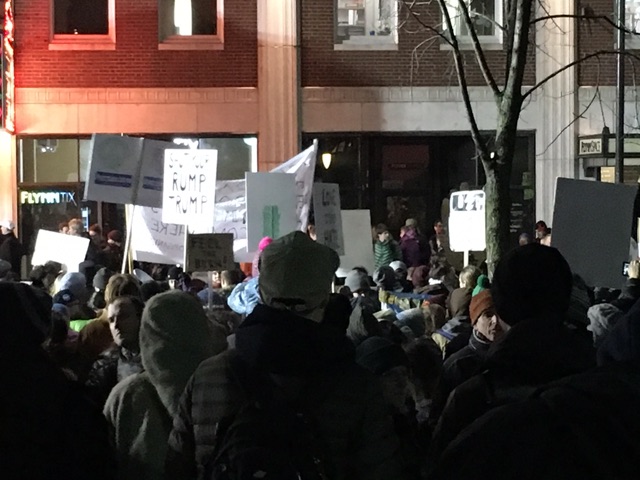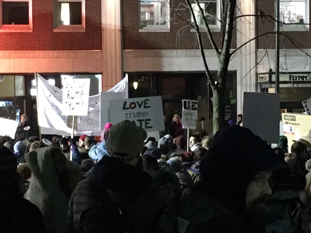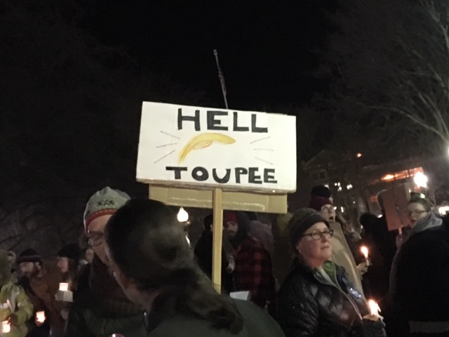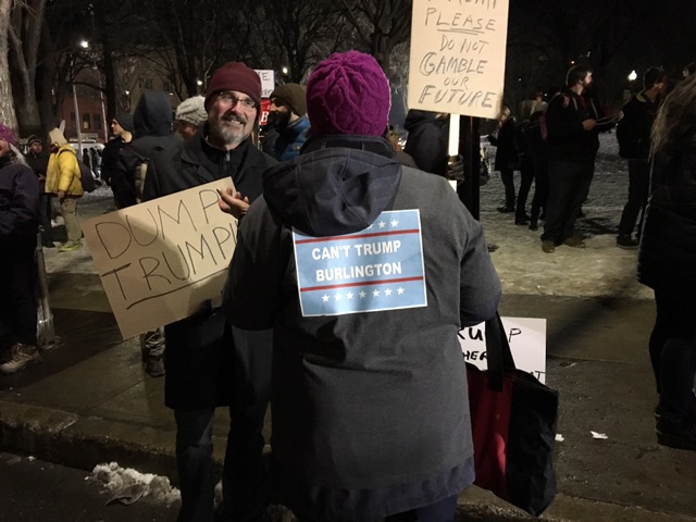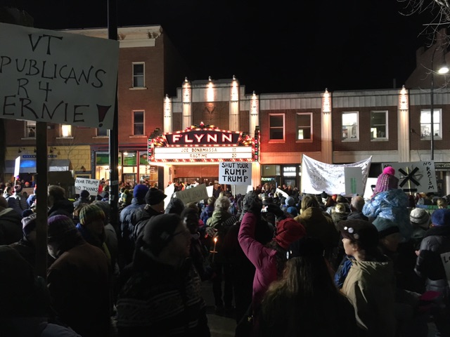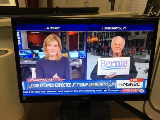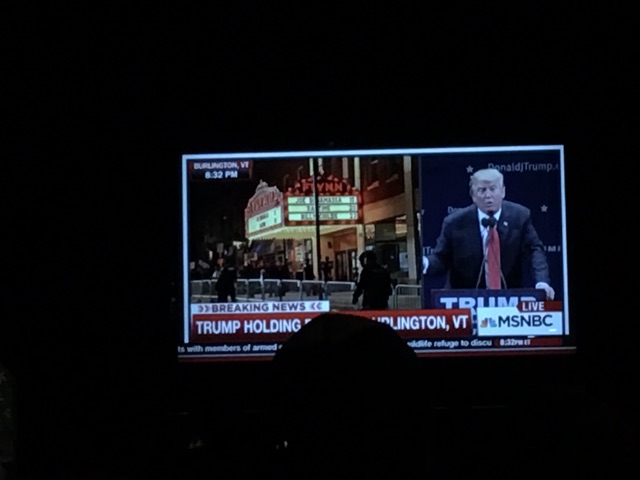 Just back from quite an adventure. Donald Trump came to burlington.. and I wanted to be part of the group that was there to show him that Vermont didn’t need his message of hate and intolerence . (wait.. if I’m intolerant of intolerence.. what does that make me ? )