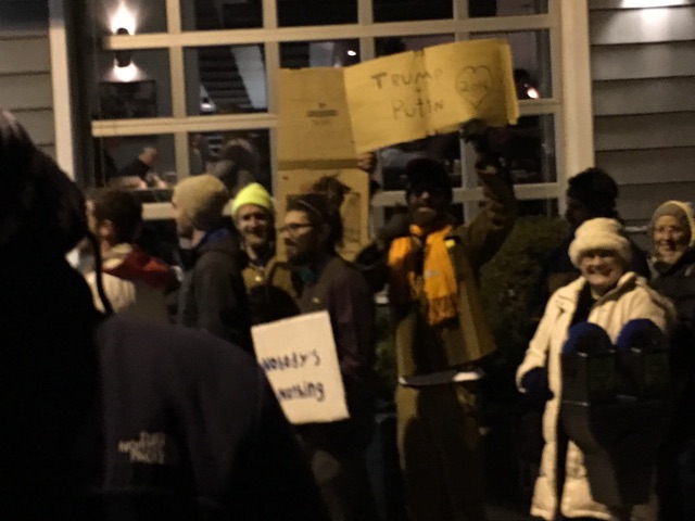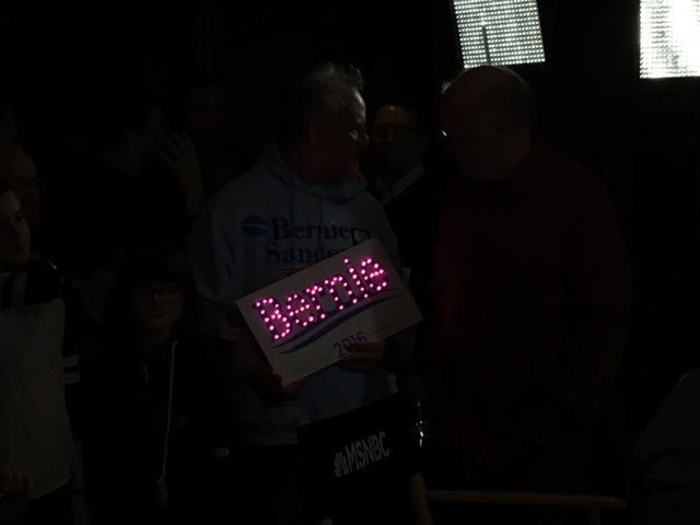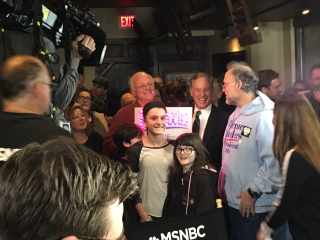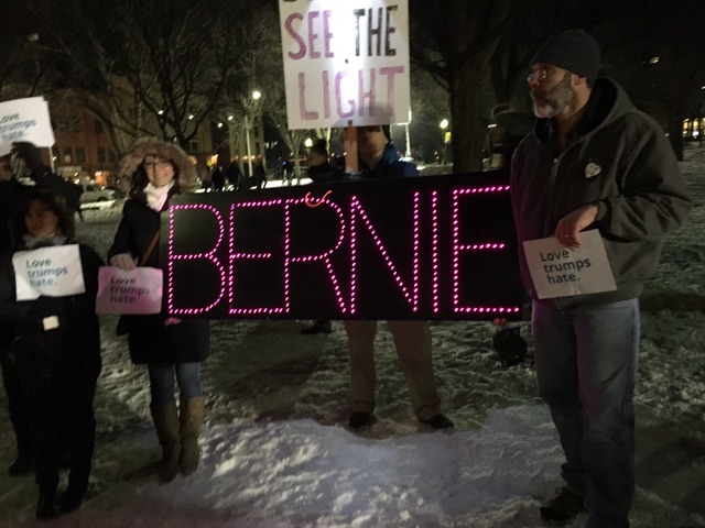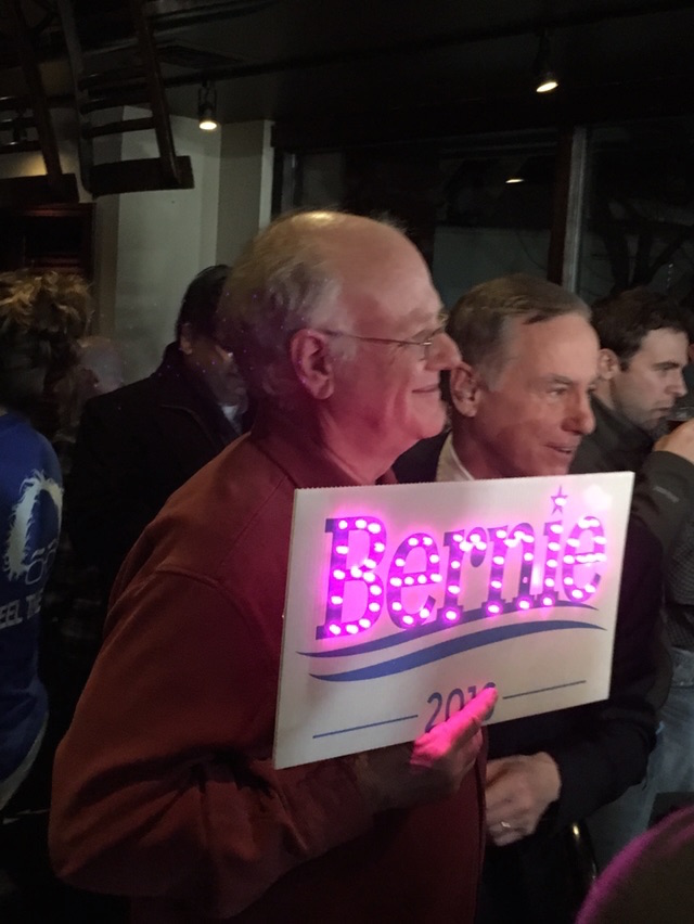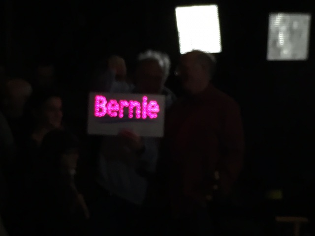 Wow…It certainly looks like you had a interesting evening. Really good to see all the Bernie supporters out in hoards. Your signs are awesome. Wish I was home to help support the cause, but I do my best to support Bernie from here. Holly and I send our Love!