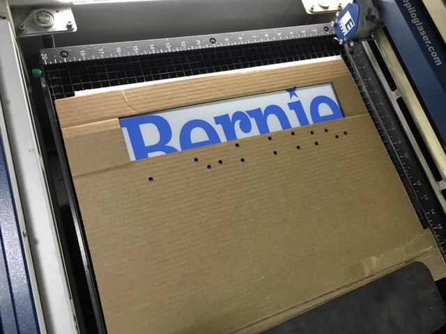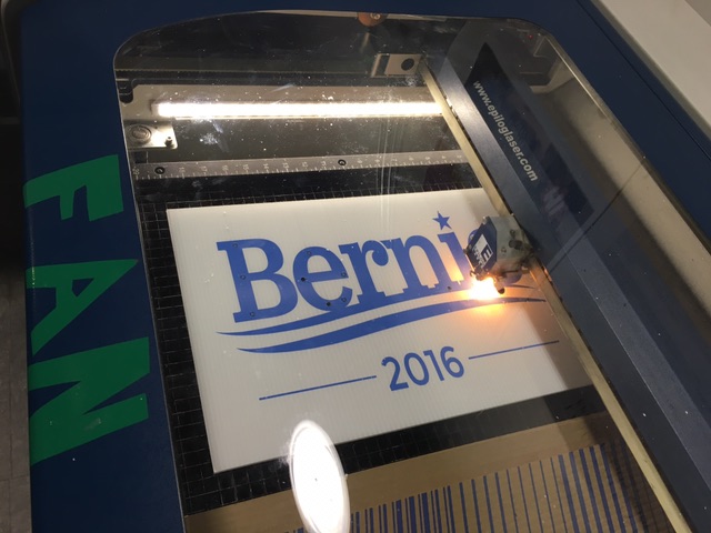 after that I dropped Tim off and headed back to the Generator.. I had 150 more light up Bernie signs to make on the laser.. demand has been through the rough .. we’re making about 2000 of them. Thanks to Jeme for developing the procxedure for drilling the signs.. and thanks to Devan and Jake for keeping me company last night.