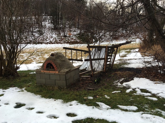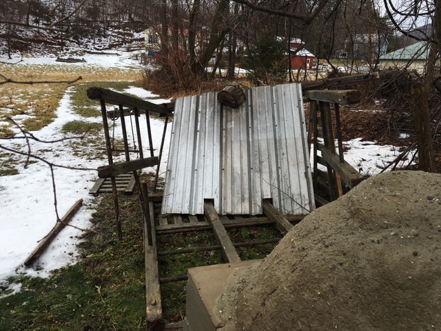we got home to find the wind had done some damage.. The shed over our pizza stove was down.. and in pieces..