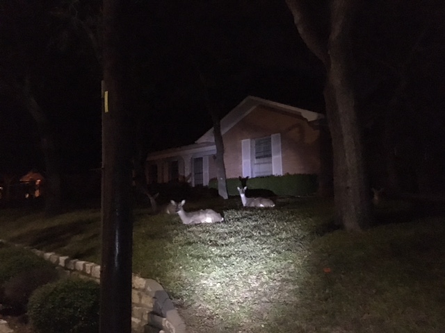 Brynn pointed at something big sitting on one of the suburban lawns.. it was a deer.. no.. wait.. it was several deer.. then.. there were more across the street.. then more.. It amazed me that these big animals could be living in such a populated place, They did not seem bothered at all by our passing by..