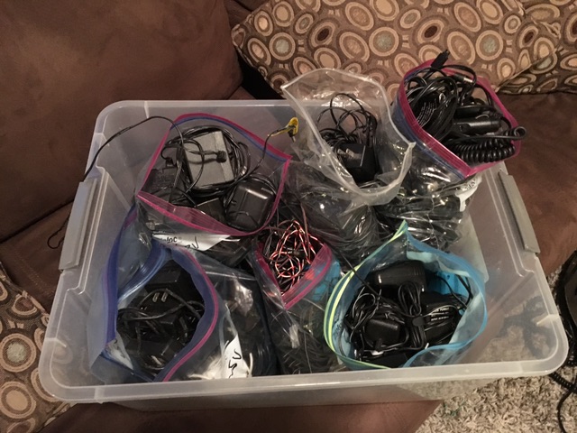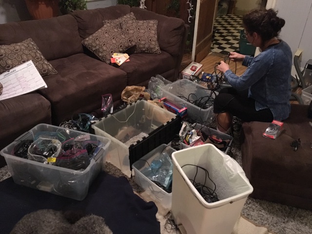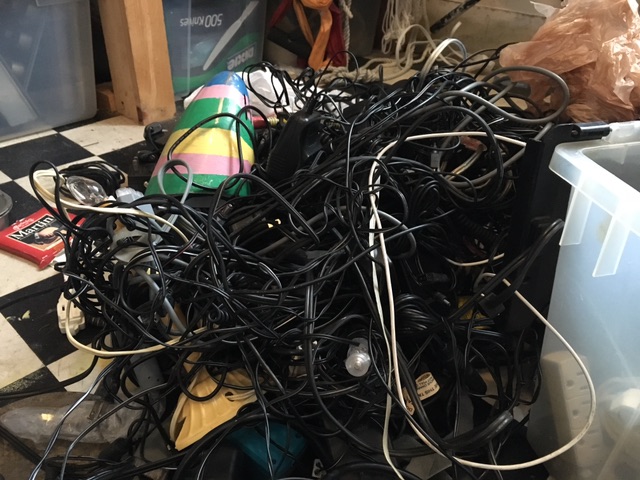 it took hours to untangle each of those messes, sort them (eg.. now all the hundreds (yes.. literally) of wall warts are sorted into bags marked <5v, 5v, 5v>x<12v,12v,>12v) .. what a great metaphor for getting your life together.