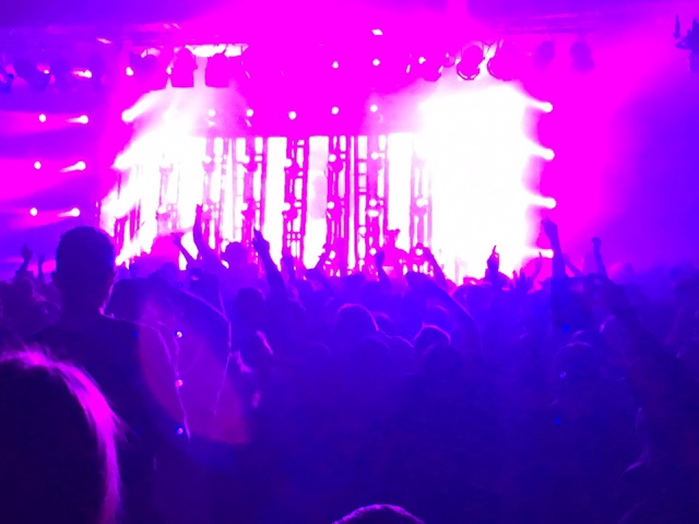 The show started about 10:15 and ended around midnight.. the band as great, the crowd was great .. the light sho was REALLY great.. and my legs feel like jelly this morning from dancing.