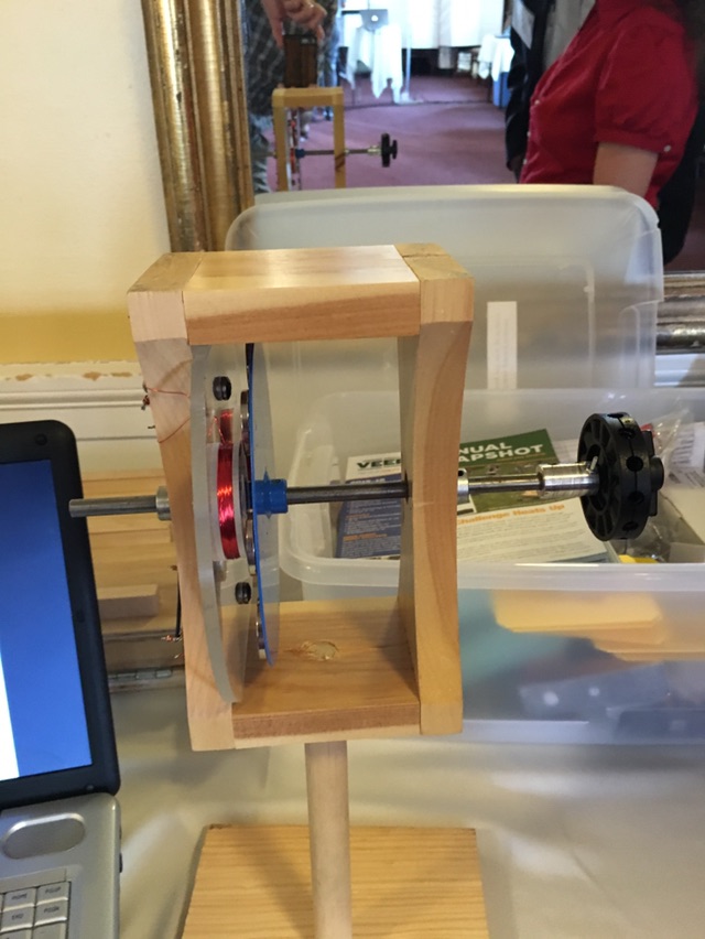 Heres a nice woman from VEEP with her wind generation test jig she uses in schools along with Frank , VASE president. (I didn’t get anyones names tonight !)