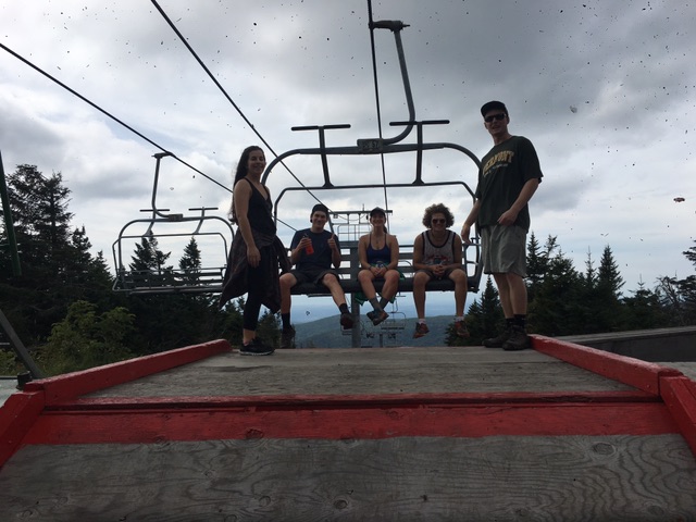 midday our freind sherry .. dianes roomate from 1982..and her daugheter laurencame over.. at the same time gabe and a bunch of his roomates showed up. We hiked up Bolton and helped with an annual cleanup of themountian picking up trash
