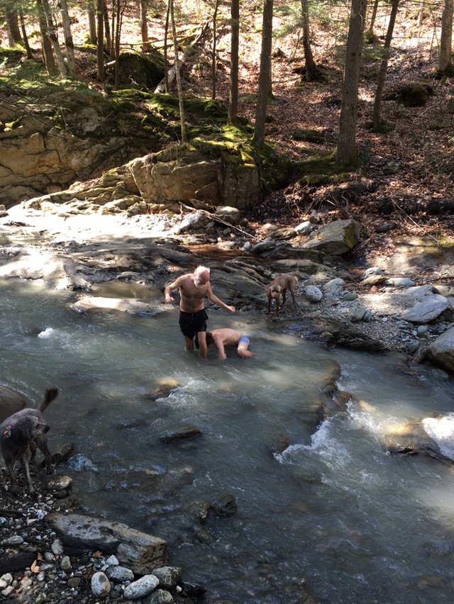 Gabe and i kept up a mariano cohn tradition of jumping in honey hollow .. Thee was still ice in it !