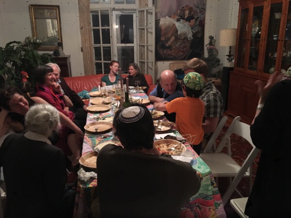 We’re gathered at the houses of my great aunt Ellen.. and her daughter suzy who lives next door .. for their annual huge Passover Seder . That will be tomorrow night . Tonight was just a warm up of eating drinking and catching up.