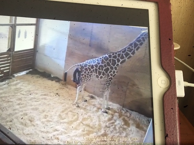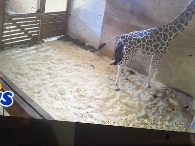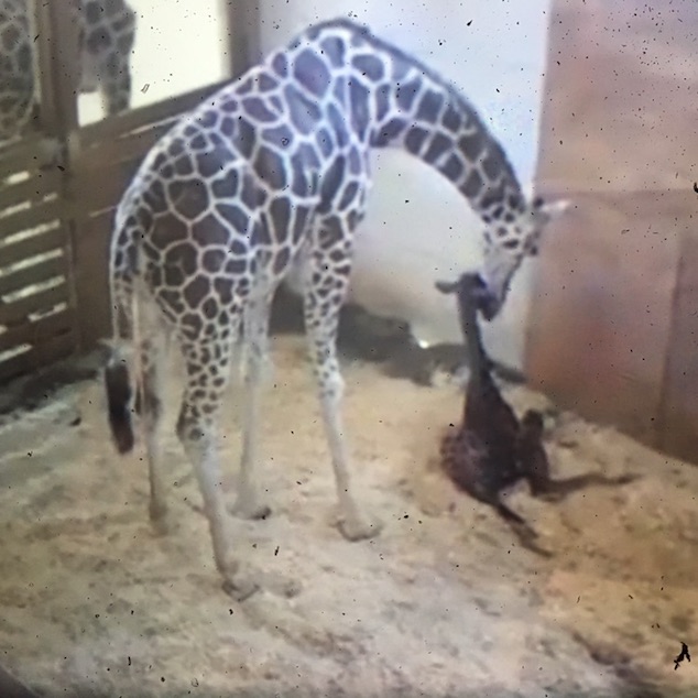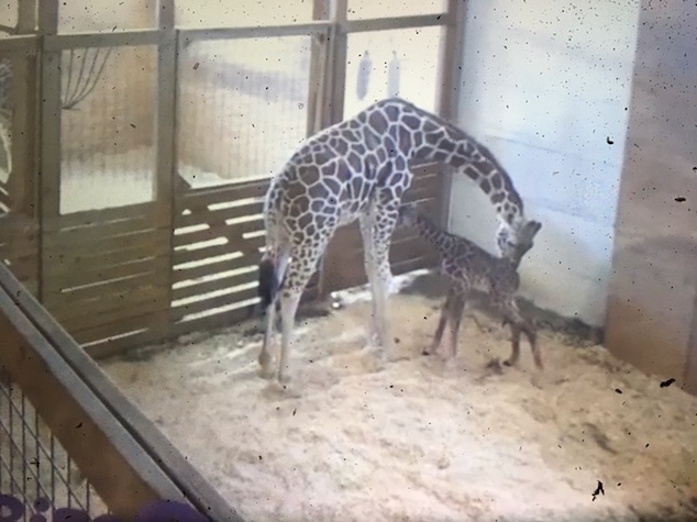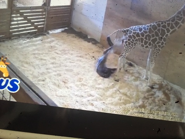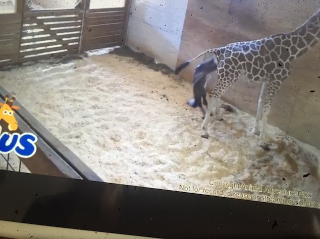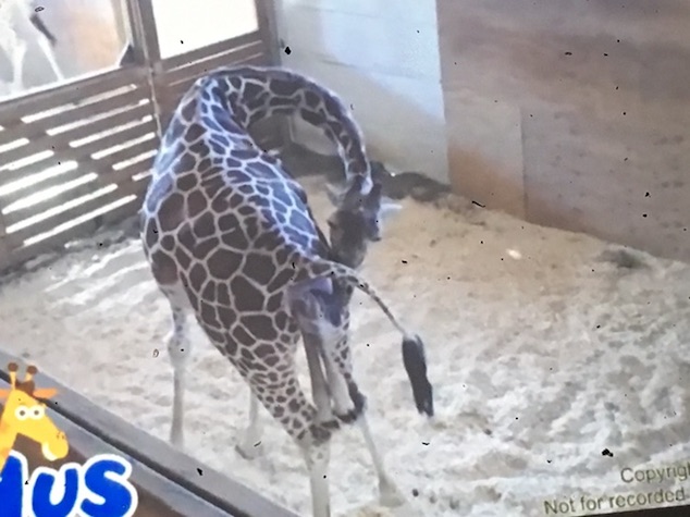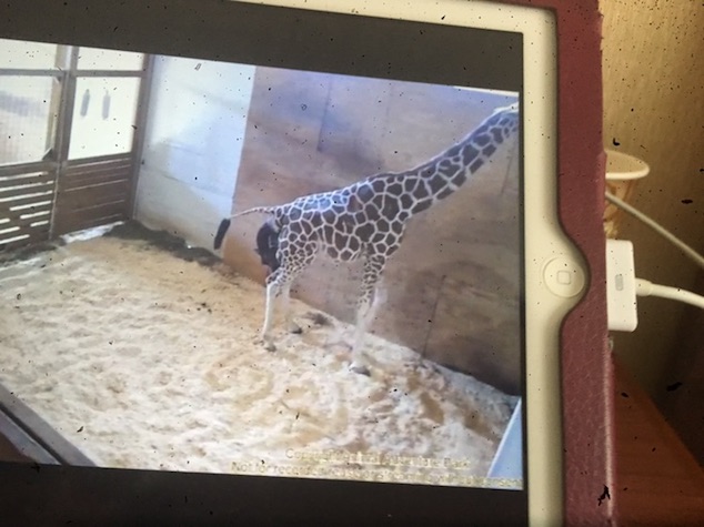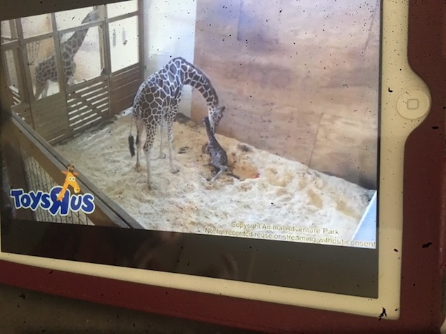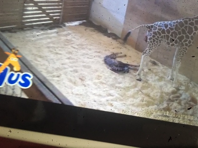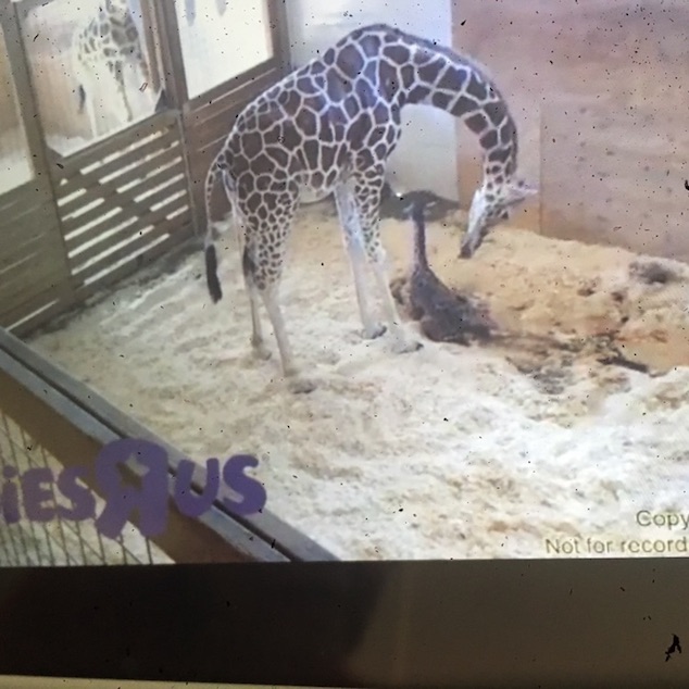 Amazingly full day here n Baltimore.. It began with a birth. April the giraffe has been about to give birth for about 2 weeks. April, who lives near diane’s hometown .. has become a media star as people wait to see her calf. DIane had been following Aprils projects as had several other folks we know. . Early this morning Diane got an automated TXT msg that it was almost showtime. Diane, my mom and I watched for about 30 minutes as first two tiny holves, then a nose.. then fonllay the very tiny (for a giraffe) baby