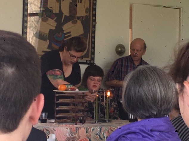 kate and her partner kate presided over the service. they started with the lighting of the candles . They duid a great job on the service. they brought in stories ot balance the geneder innequality and noraly slanted world view of formal religion.