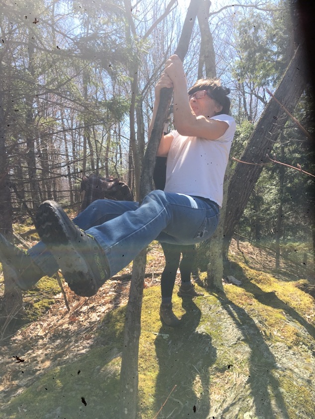 James is an interestign frind of ours.. Lives lone and spends a good deal of time in the foods behind his house. He took us up the hill to show us where he works out.. He keeps fit by using his gym in the woods