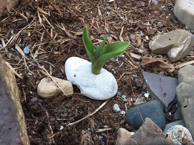 came home to find this daffodil growing up through a hole in a stone.. amazing.. no ?