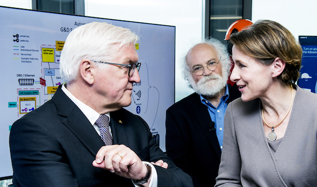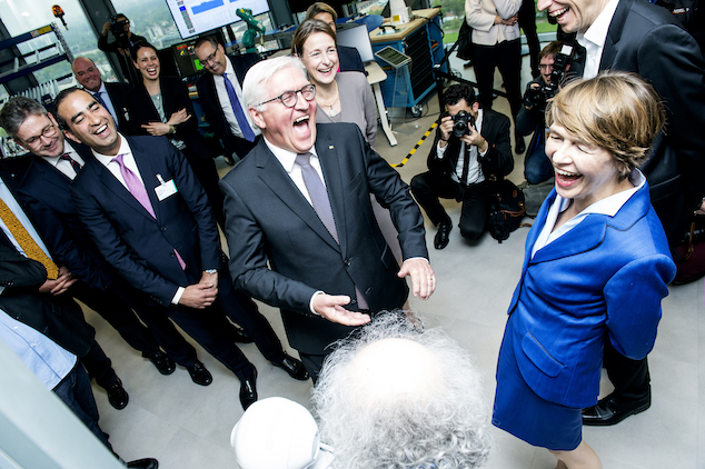 I had the great oppertunity today to meet German Bundespräsident Frank-Walter Steinmeier and his wife Elke Büdenbender. They came to our center so what were doing. Here’s a great picture of me, Martina Koederitz, the General Manger of IBM Germany. Switzeralnd an Austria , the President, his wife, and my freind Sanjy