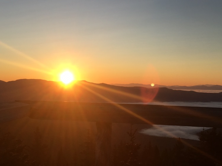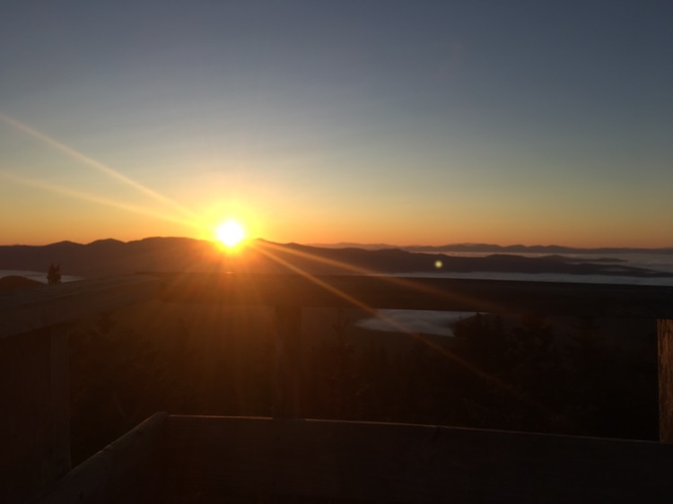Perfect day.. Diane and I found ourselves both awake at 5AM .. for me it was jetlag.. for her.. who knows. but we decided to take advantage of the early morning to hike Bolton Mountain to watch the sunrise.. it was just above freezing when we left home in the dark. we took the climb quickly .. about 45 min.. and got to the top just as the sun was rising.. here’s the view back over toward the house.