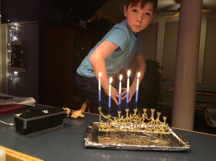 gabe was heare when I got home.. got to light night 5 of the menorah.. ,. hadn’t been able ot mark chanukah yet\