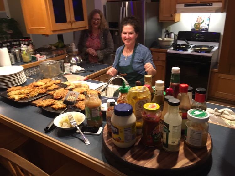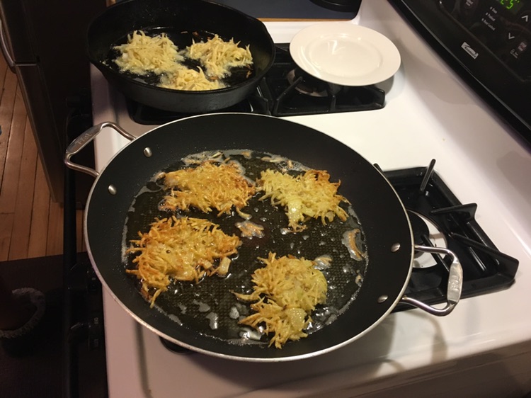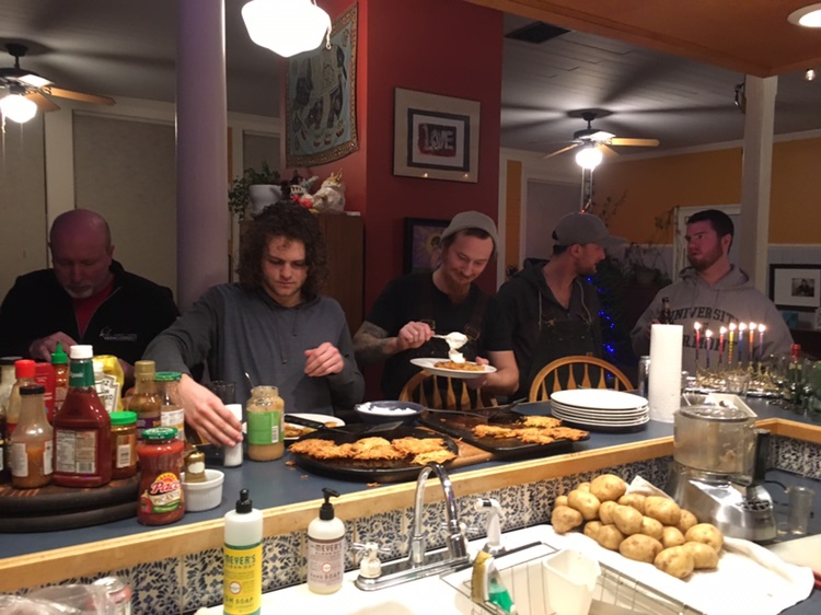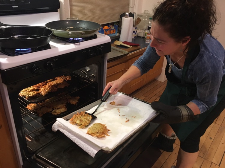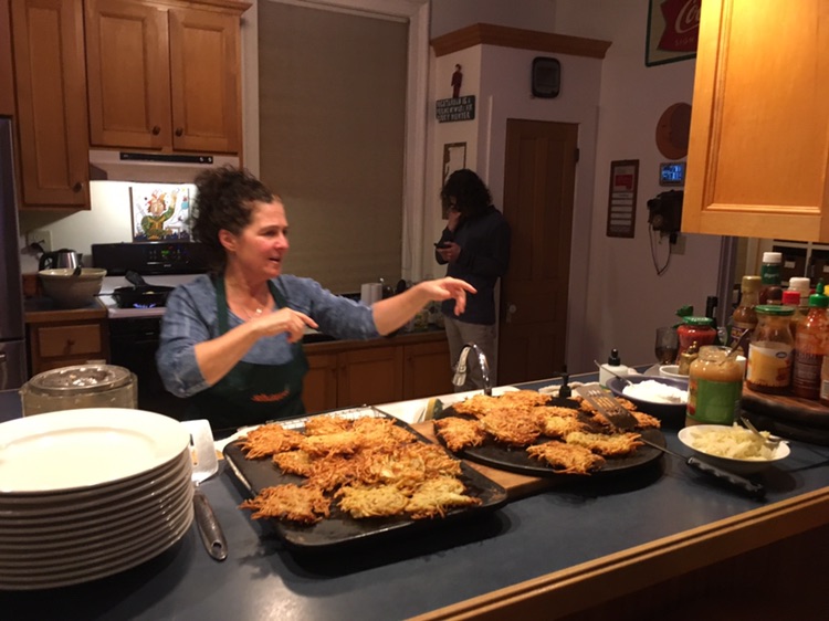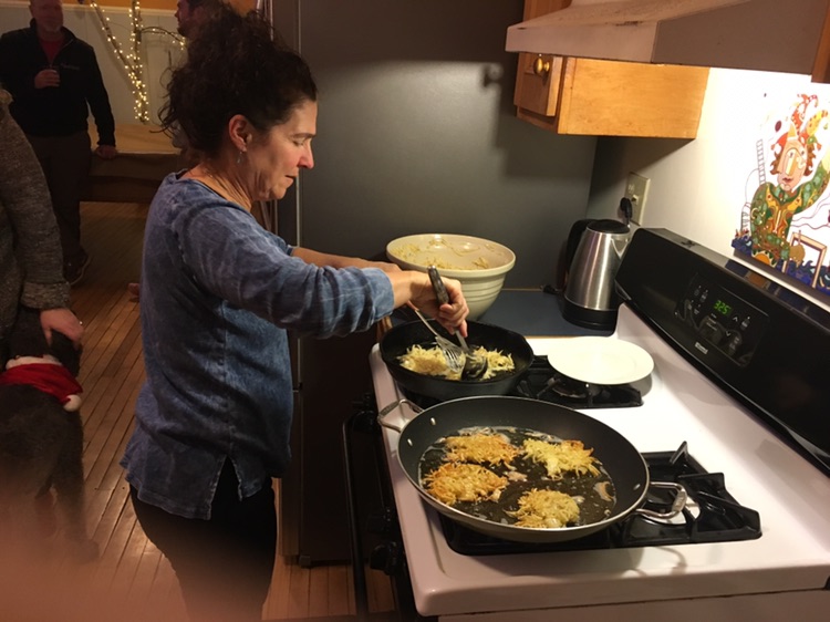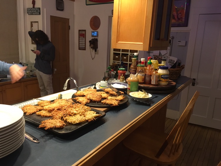 we took advantage of the weekend night to organize a spontaneous chanukah party . basically an excuse to eat Latkes (potatoes, eggs. onious, flour .. and tons of oil !)