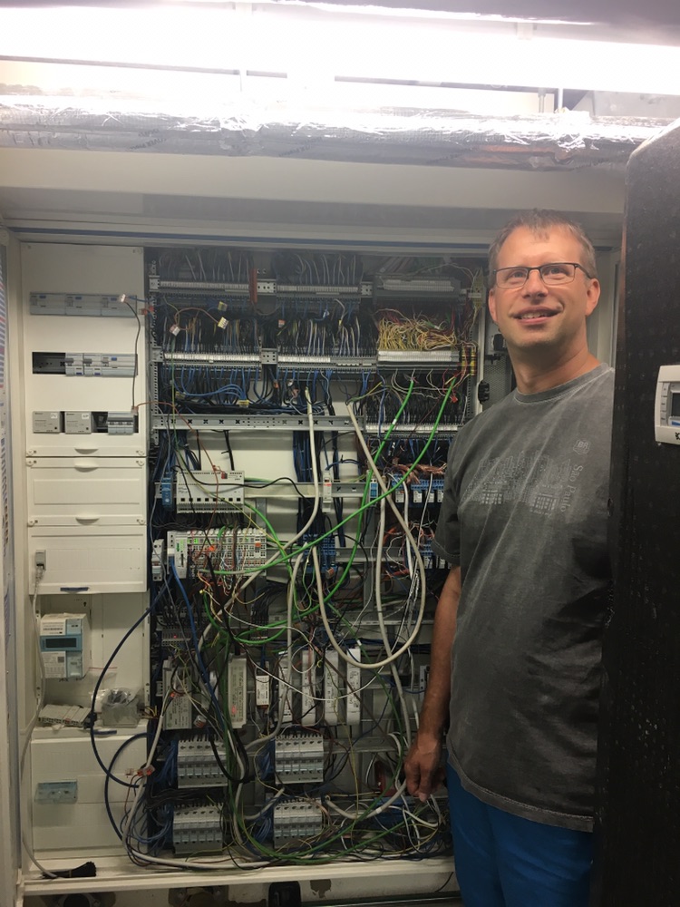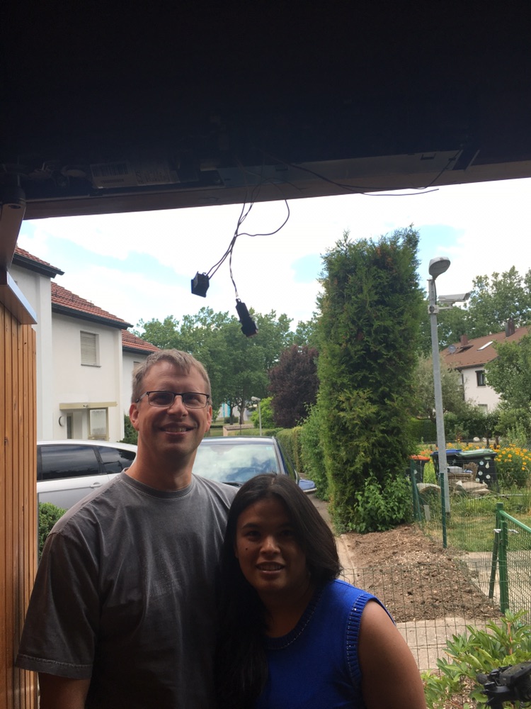 I went to Jochen’s magic house and met his magic wife ! Here they are with wires exposed.. Jochen is wiring the garage door so it automatically opens when they ride in with their cool eelctric biles.
