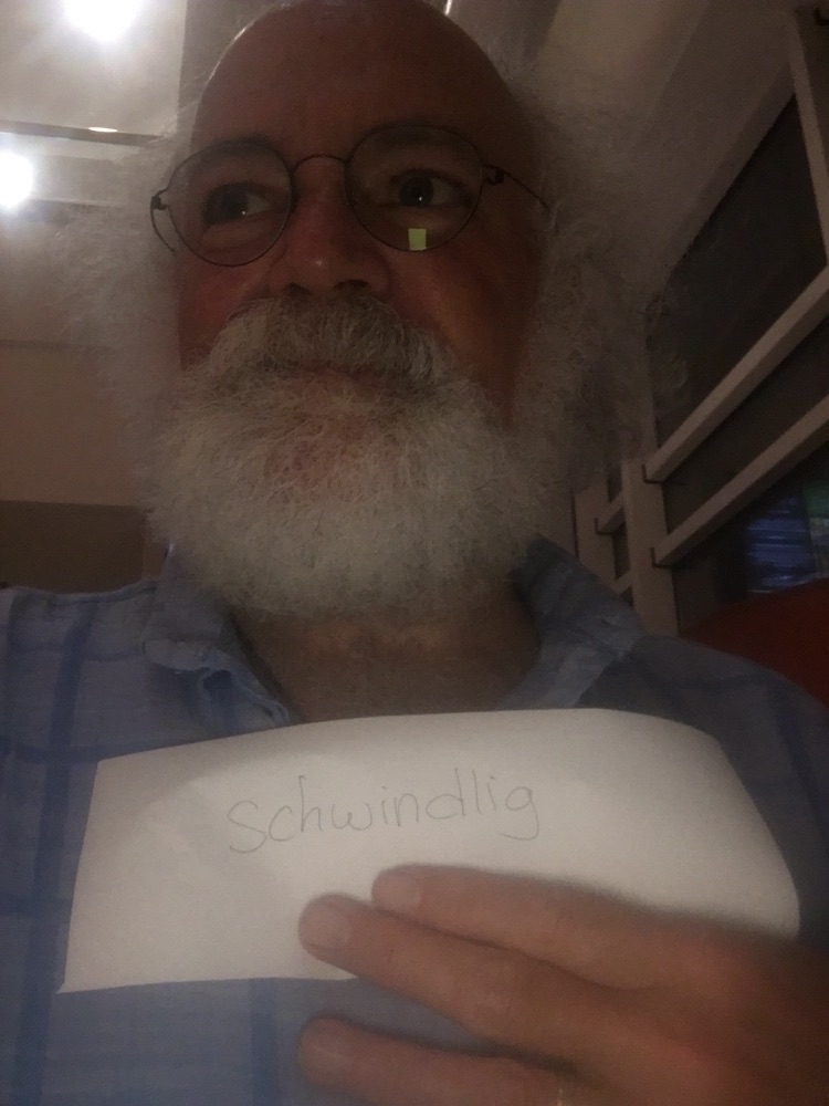 schwindlig – dizzy.. like when you’re head is spinning with toop many teekelchen