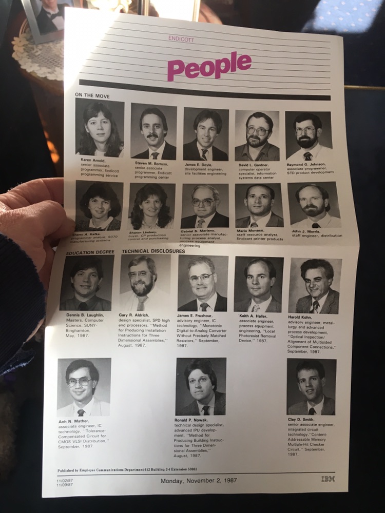 Mixed set of stories from this week in munich…. FIrst a small world coincidence from the trip over. My flight from Burlington to Newark was delayed due to air traffic control yesterday. Because I’s fly so many miles on United, they take very good care of me. So when I got off the plane was a very nice woman there with the small screen with my name and two other names. One of them was James Doyle… Sure enough, my friend James Doyle came walking off of the plane. I haven’t seen him for many years . but the interesting thing is  Three weeks ago when my mother-in-law Marcia died, we were going through some of her papers. In there was a picture from my father-in-law Gabe’s  time at IBM. In 1987  gabe had just got a promotion.  there was a small flyer they had his picture as well as several others.