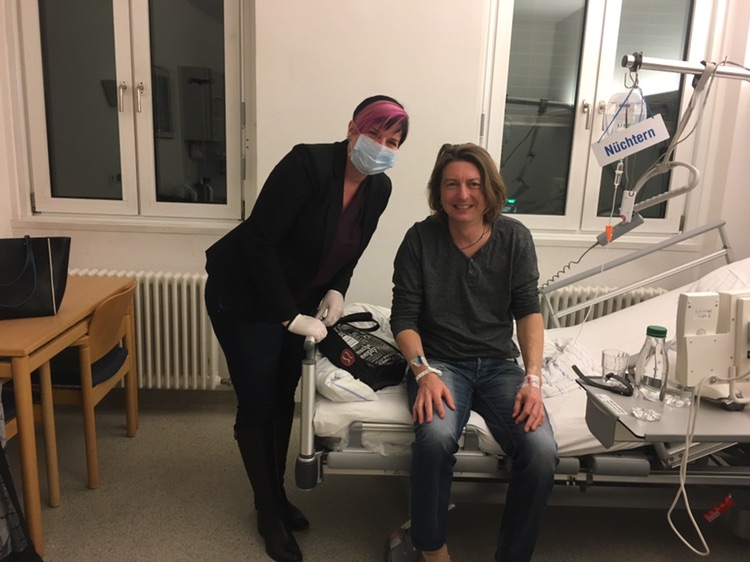 Another weird event .. my good friend Andy Barnes came here to Munich last night from England. He got in about 10:30.. ate some french fries at the hotel.. then went to sleep.. about 1 am he woke up feeling sick.. i’ll spare you the details he shared.. but he spent the next 11 hours (!).. lying on the bathroom floor in his hotel throwing up.. he was dehydrated.. and  his throat was almost swollen shut.. he managed to literally crawl down to the lobby where our friend Jerry got him some help. Jerry called the ambulance .. and got Andy taken in to the hospital