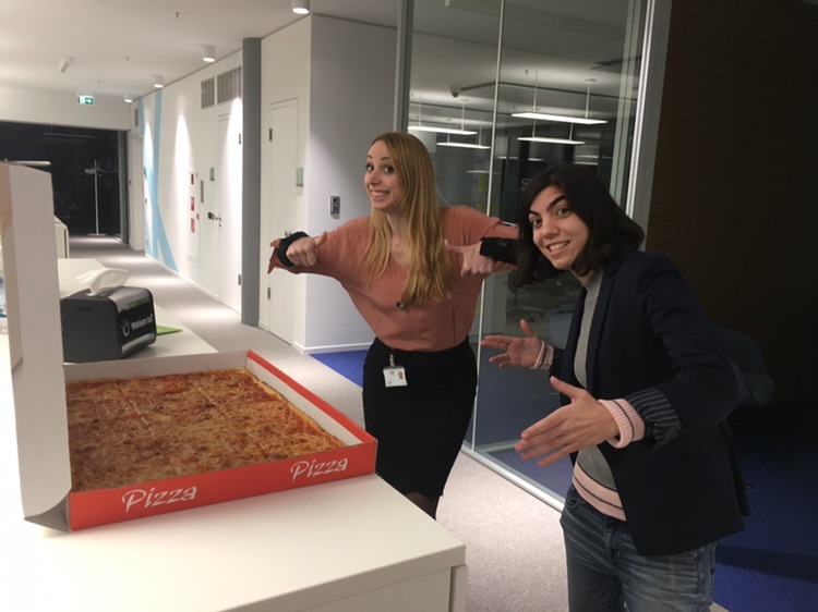 finished with a late night work session with freinds emily and svenja.. and pizza !  the three of us almost finsihed the whole thing 1