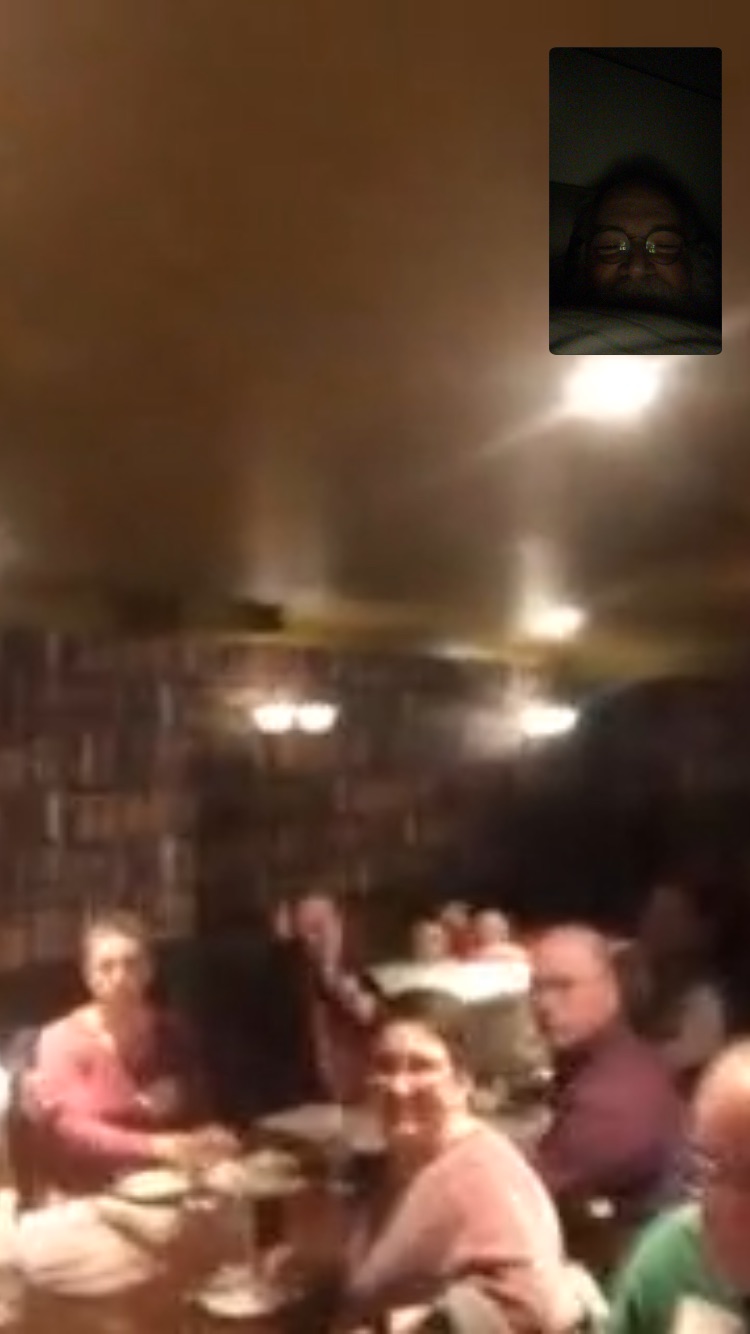 busy day,.   got off to a funny start.. at 1:45 this morning my phone rang with a facetime call. my  friends from the Vermonts Own MIT club (VoMIT) called from their  January dinner to say hi.. I got to see them all enjoying a beer and they got to asee me in bed !