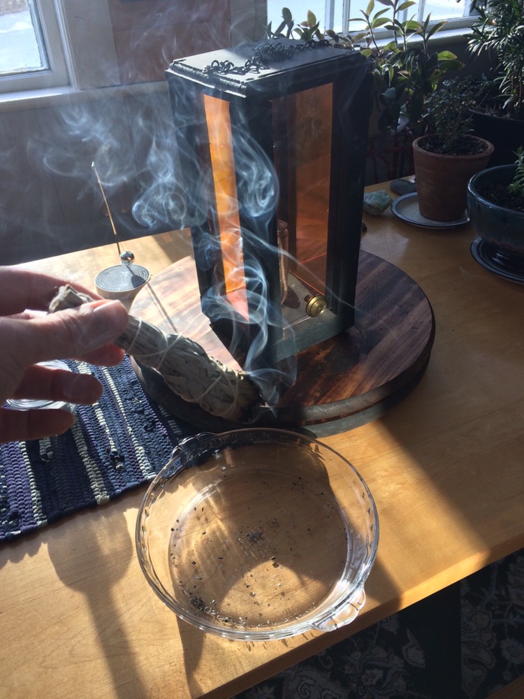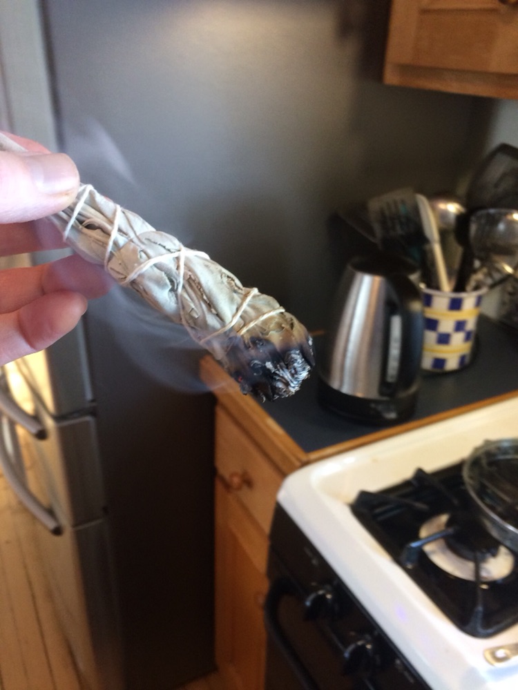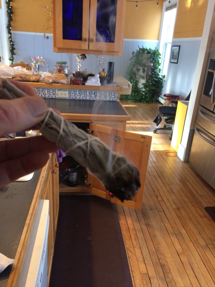 ‘smudging’ the house with sage.. to cleanse it.. I walked every inch of the house spreadign the fragrent sage smoke to start the new year with a fresh house