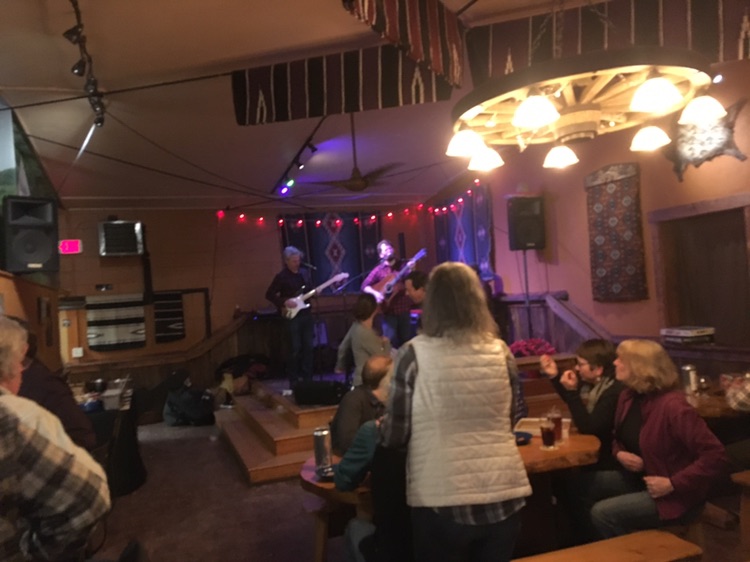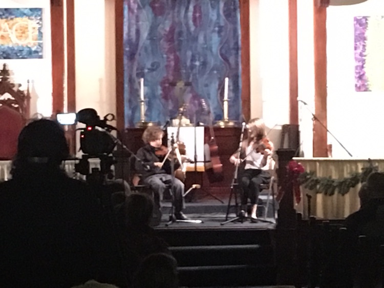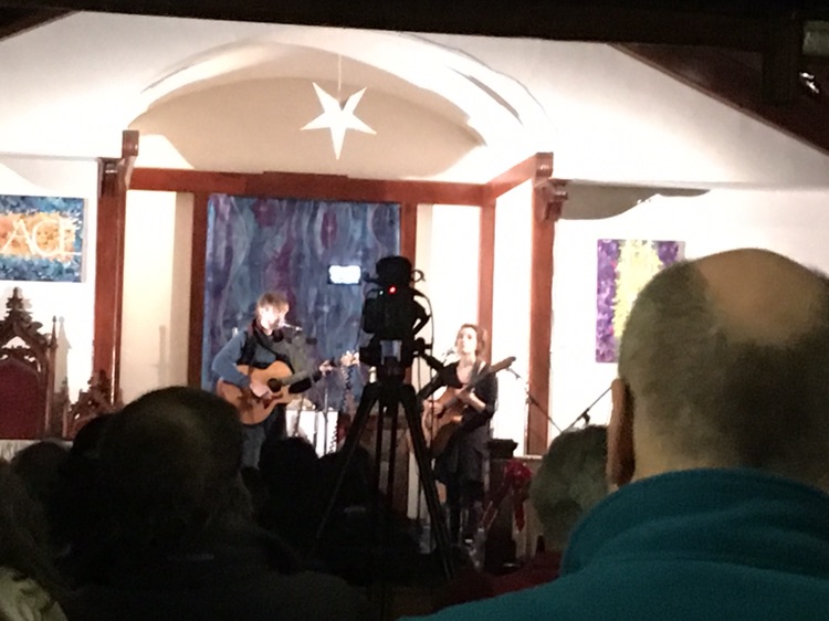we finally ventured out at around 6:30.. we stopped and had a bite and a beer at Stone COral then drove (too cold to walk) down tot eh COngregational CHurch (aka the COngo) for their annual New Years Eve folk concert bemnefit for the Round CHurch.. We heard one of my favorite bands.. Cricket Blue..