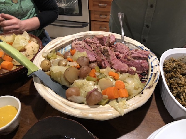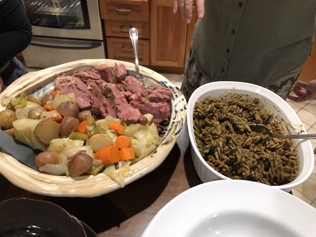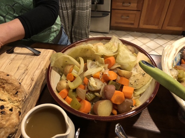 jen had made corned beef an cabbage.. .. and just cabbage for us veggies.