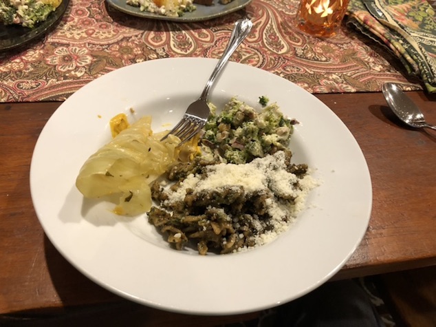 diane had made green noodles .. with pesto from last years garden