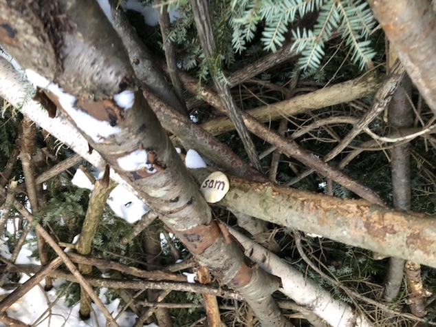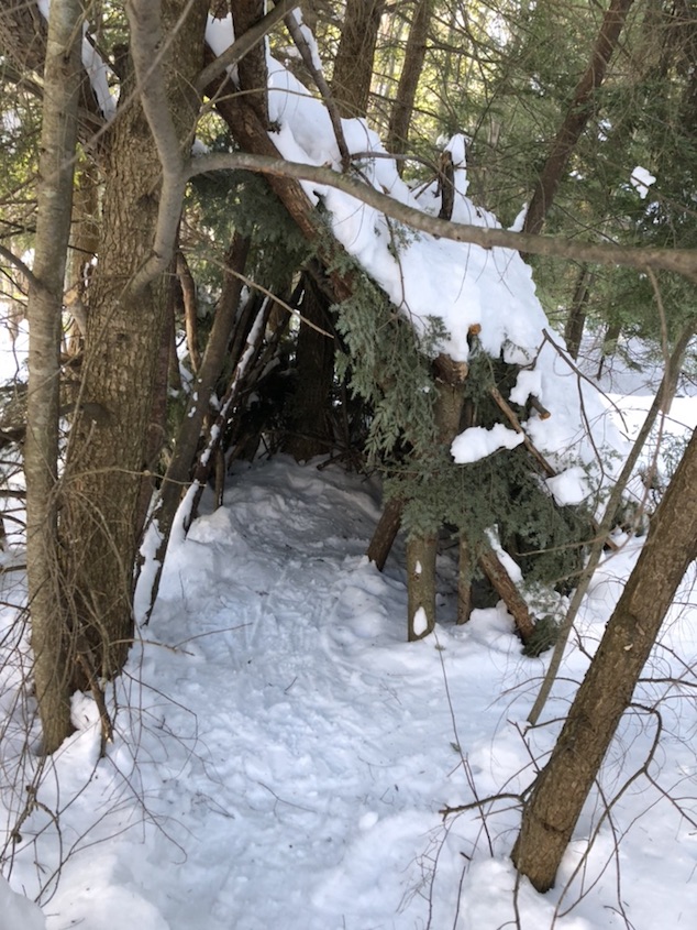 we followed another snowshoers trail and it lead us to this very cool makeshift shelter.