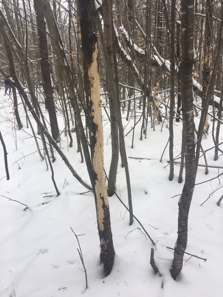 sleepy day here… did get out for a good hike in the wet snow.. saw signs of animals stripping bark for food