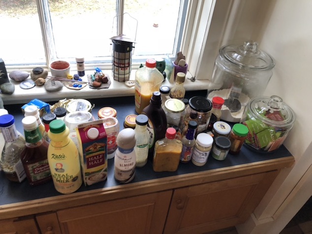 Beutiful quite day at home. Lots of small , important things accomplished. DIane found her sun glasses, I caught up on email, we took a good hike in the woods.. and we cleaned out our refrigerators. Our ‘backup’ fridge burned out.. leaving us with the daunting task of moving everything into one.. We we re forced to clean out both fridges.. .. and you know what we found.. most of everything in there was condiments.. . We had SO many types of hot sauces, relishes,marinades, seasonings, dips and dressings that there was no room for food !
