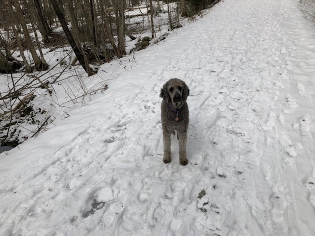Late afternoon I took the girls our for a romp in the woods. THe snow and ice is still pretty deep out there. I was glad to be