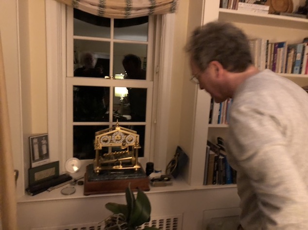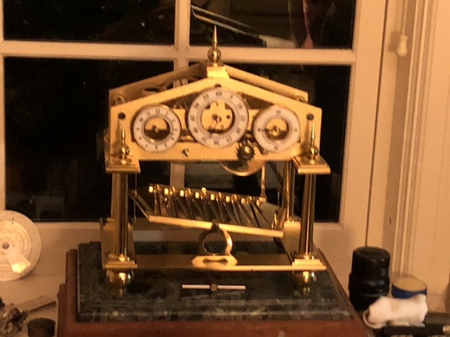 his weird mechanical clock (uses a ball rolling as a regulator)