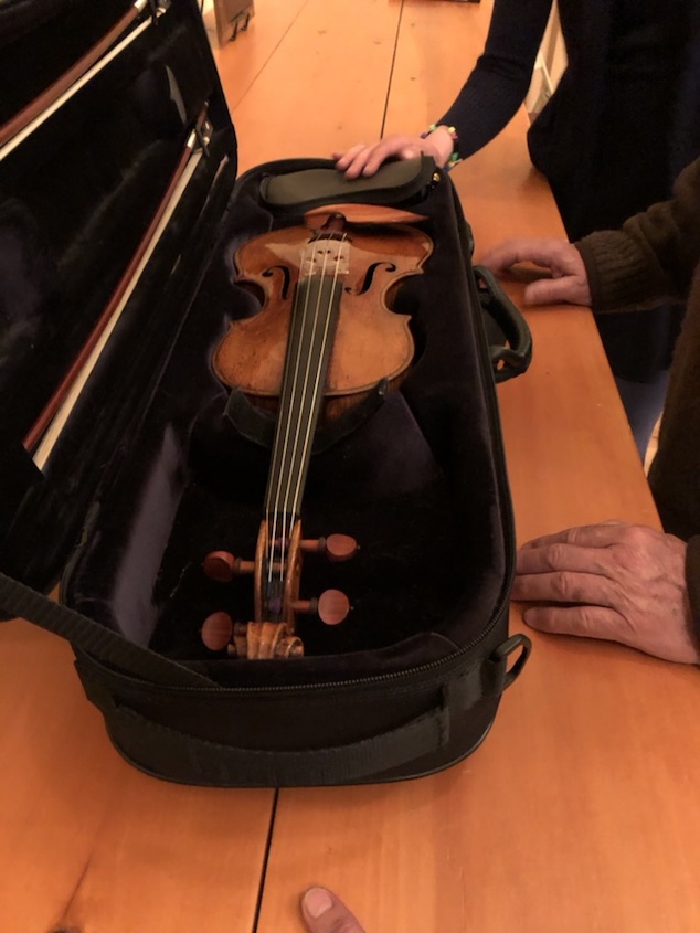 the viloin was foudn in an attic by the grandkids of a woman who had recentl died. she’d gotten it as a gift in 1904
