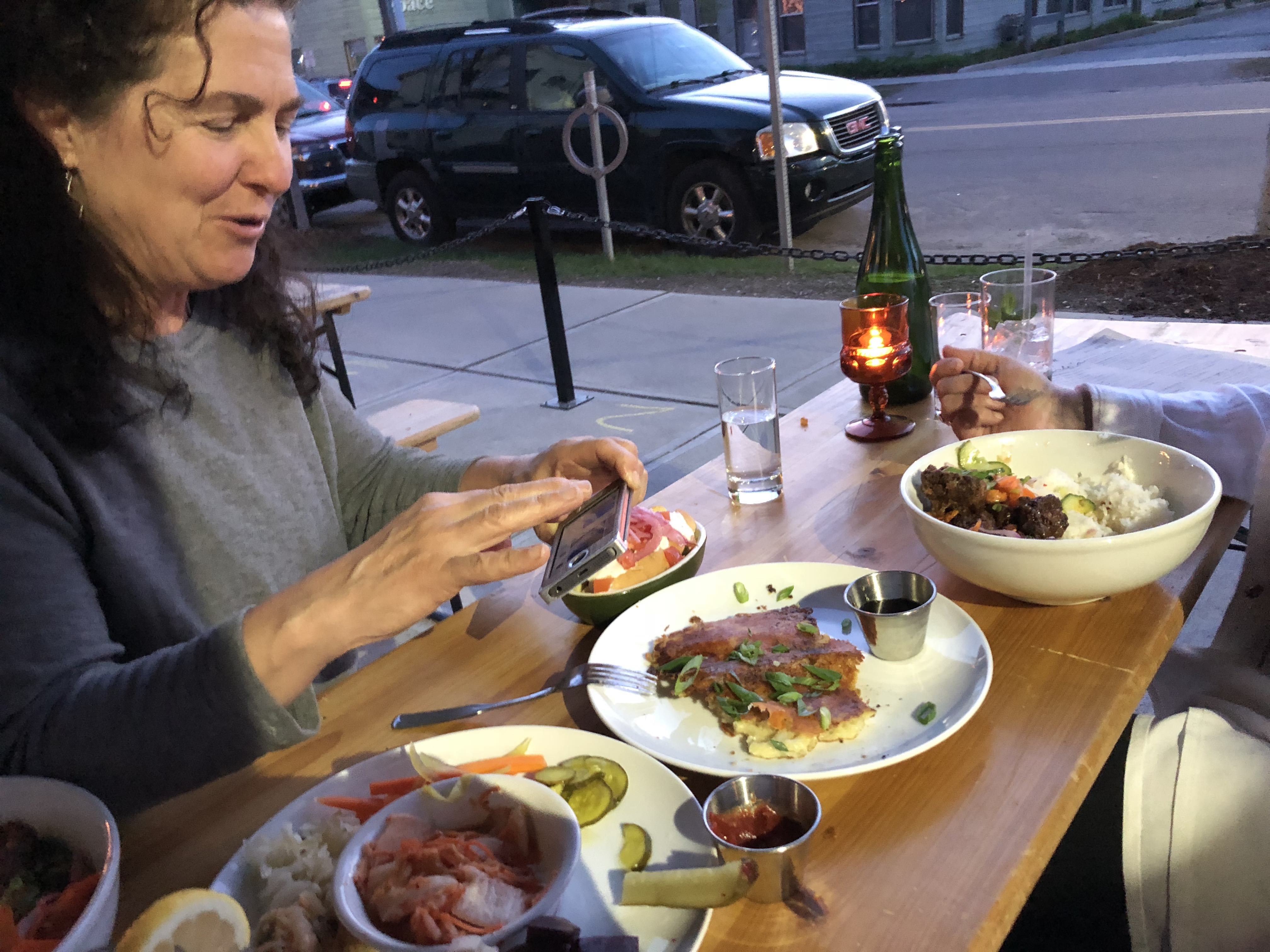 diane met me at the airport last night nd we went to find our friend Ellen.. We checked out a new restaurant in the north end called Butch and Babes.. They have the most amazing General Tsao’s Cauliflower !. it’s really amazing