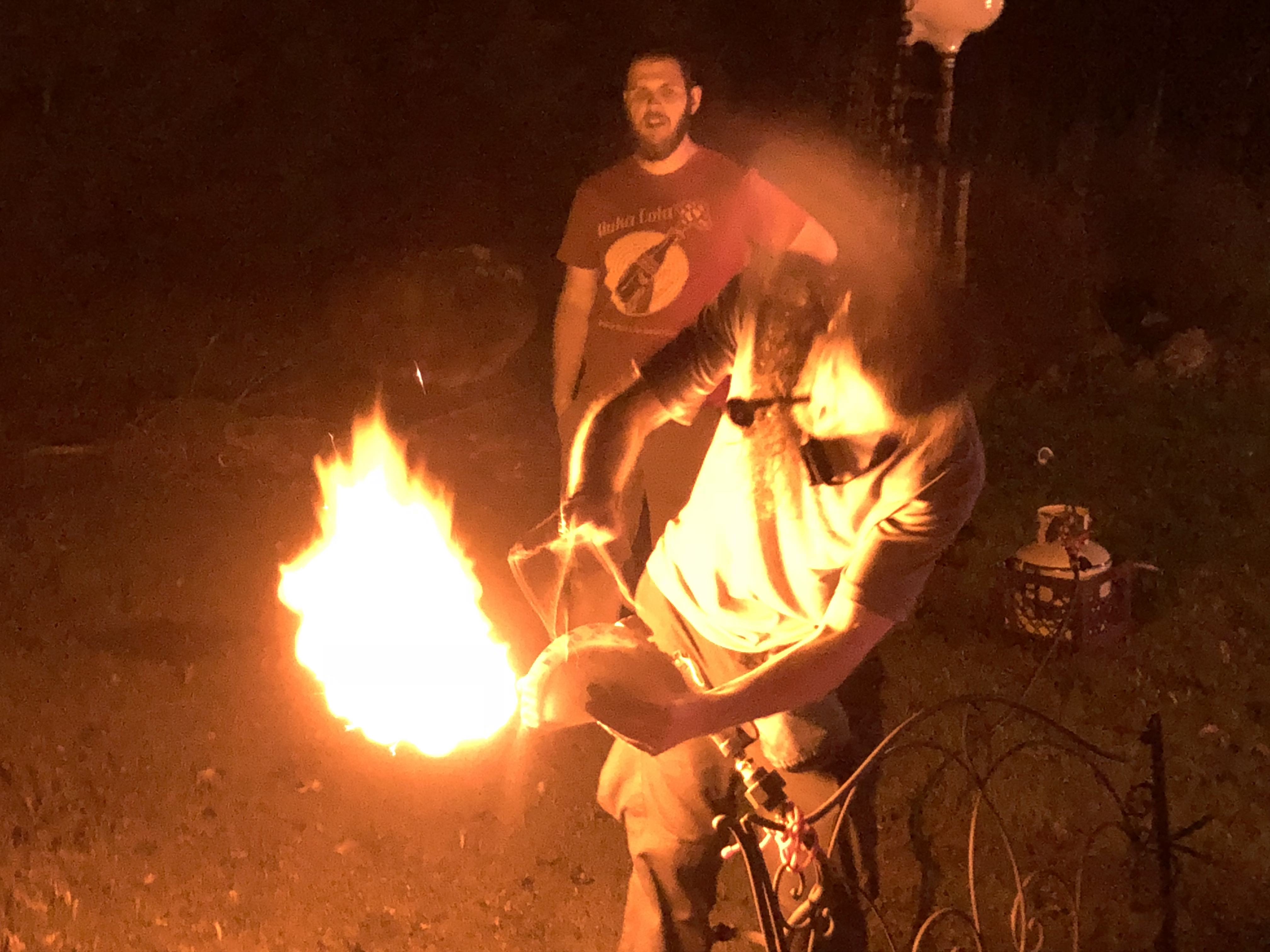 after dinner ew took Ellen hoenm then headed to Chris and Kim’s they were having a Burn to mark the passing of Larry Harvey.. the founder of burning man who died last week.. I’m sure there were many fires lit in Larry’s memory .