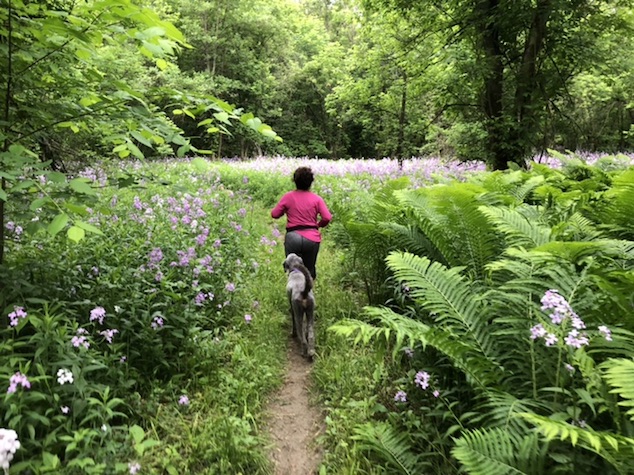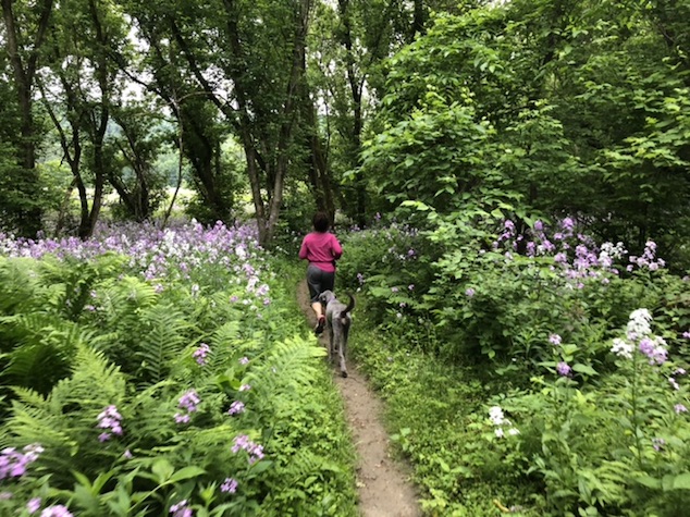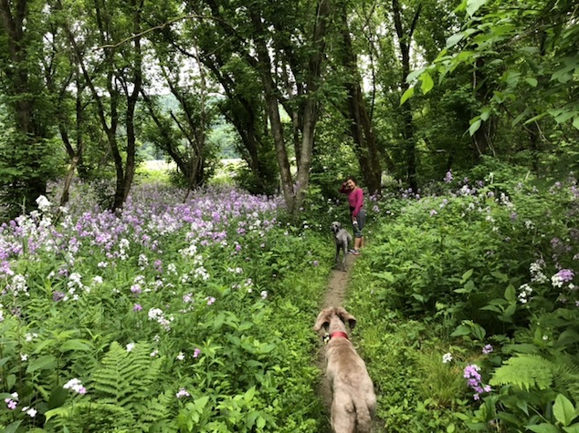 late afternoon diane. gabe the dogs and I did a loop up in honey hollow.. enying the amazing but too dry weather.