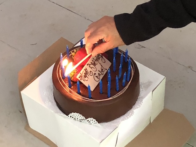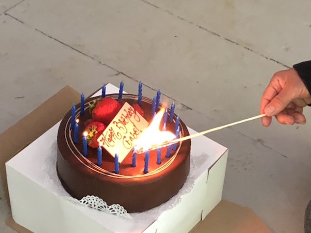 here’s Matt tryign the thing on before we added the shield